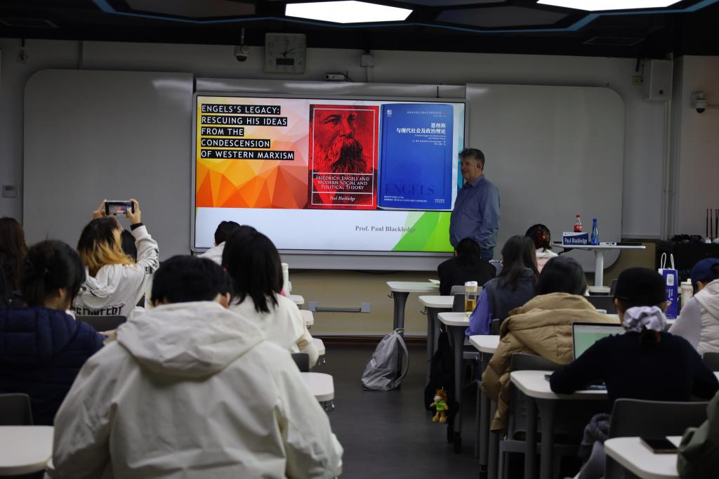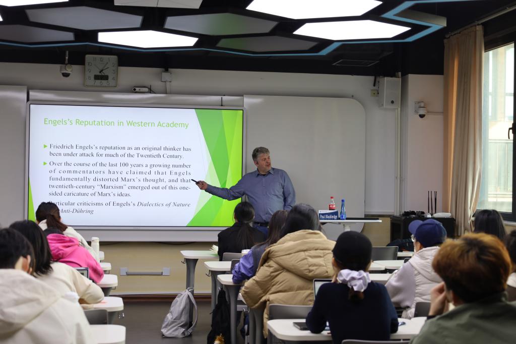 2025年11月12日,学院邀请伦敦南岸大学与山西大学的双校教授保罗·布莱克利奇教授为师生开展专题讲座。布莱克利奇教授以“恩格斯的遗产:从西方马克思主义的轻蔑中拯救其思想”为题,深度驳斥西方学界对恩格斯的片面解读,系统阐释恩格斯思想价值与当代生命力。