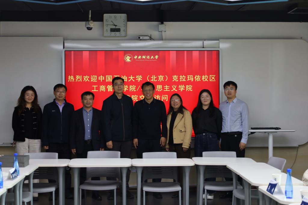 2025年11月21日,中国石油大学(北京)克拉玛依校区工商管理学院/马克思主义学院党委书记杨东杰一行来访我院,双方围绕“十五五”规划编制、“大思政课”建设、数智化改革、大中小学一体化建设等方面工作开展交流研讨。院长黄刚教授主持座谈会,学院党委书记李爱民、副院长简臻锐、习近平新时代中国特色社会主义思想概论教研室青年教师张玲蔚等参加会议。